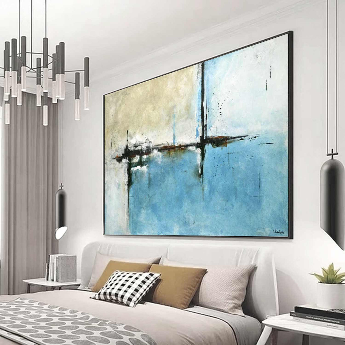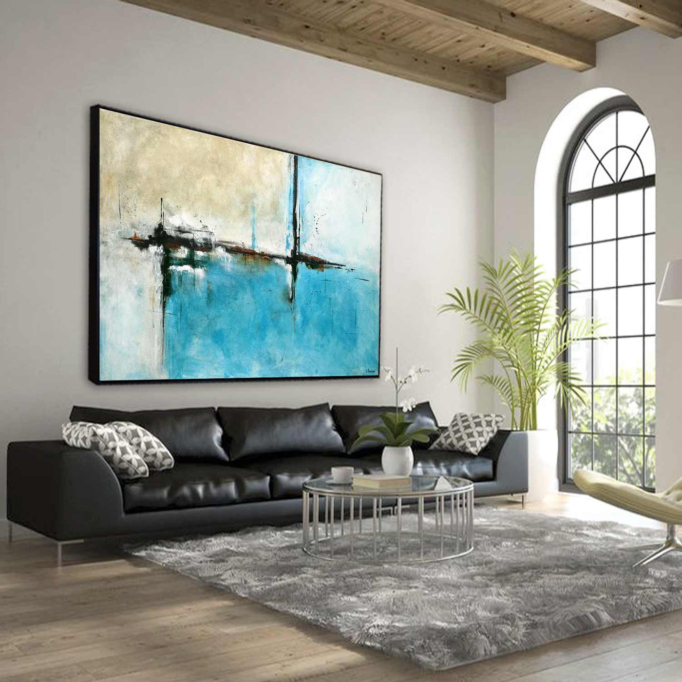 Turquoise Beige Large Abstract Painting For Office Wall "Daydreamer"