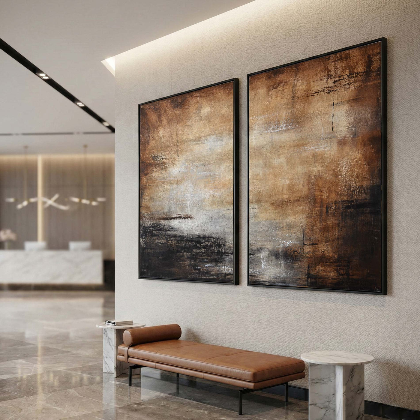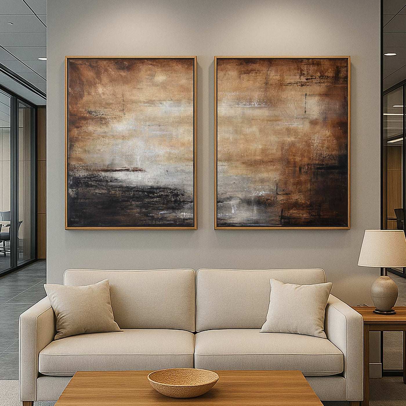 Contemporary Original Paintings 2 Piece Brown "South West"